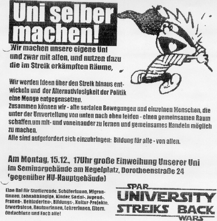 Studenten gründen am 15.12 "eigene Uni" Bildung für alle und zwar umsonst - nicht mehr nur ein
