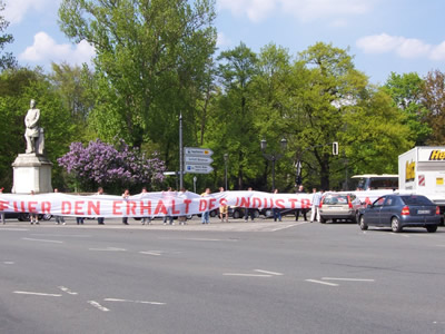 ein 1,2 km langes Riesentransparent mit Losungen und den Aufschriften