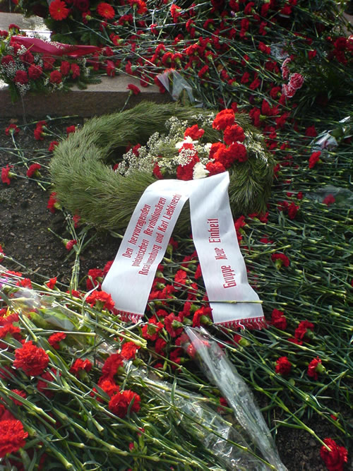 Ehrung der beiden Arbeiterführer an dem Mahnmal selbst.