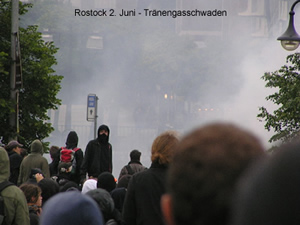 Schon bei der Demonstration vom 2.6. in Rostock hatten sich viele einschlägige Eindrücke ergeben. Die „Randale“ zwischen Teilnehmern des sog. Schwarzen Blocks und der Polizei war in den Massenmedien so dargestellt worden war, als sei die friedliche Demonstration im Straßenkampf versunken. Aber in Wirklichkeit hatte sie viel mehr mit gezielten Provokationen der Polizei und einer Inszenierung für die Medien zu tun, als es nach außen hin erscheinen sollte.