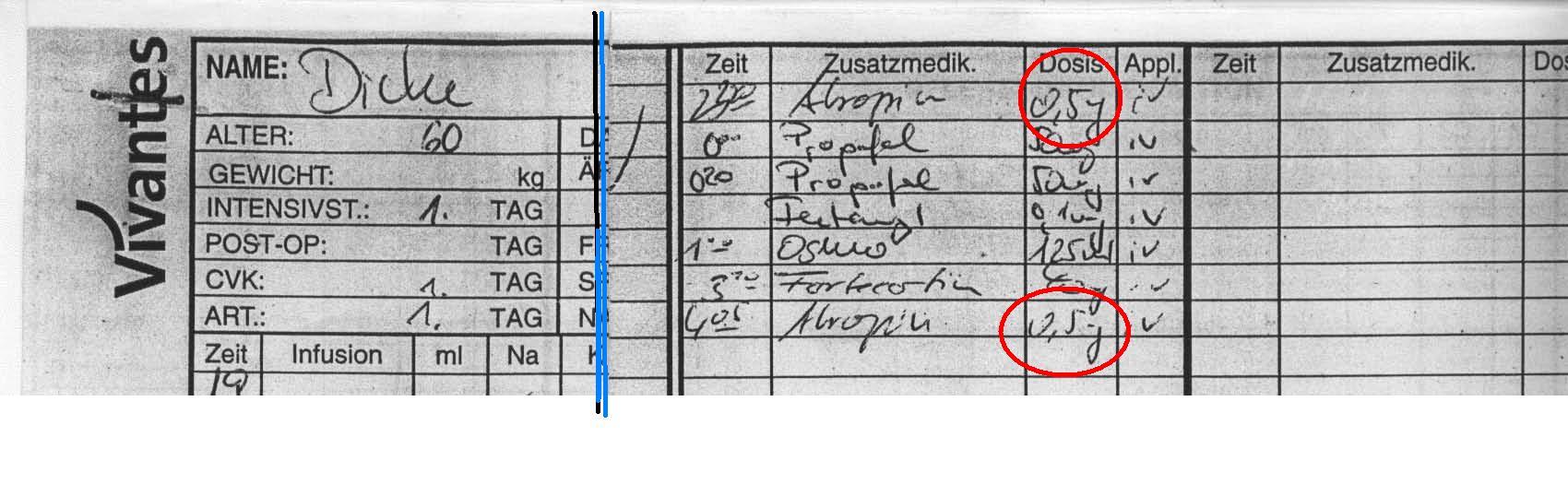Es hieß gegenüber uns immer, Hartmut habe keinerlei Reaktionen mehr gezeigt. Das stimmte offenbar aber nicht, denn sowohl erhaltener Cornealreflex (Augenhornhautreflex) als auch Hustenreflexe waren noch vorhanden. Mehrfaches Husten am Abend des 15. April führten laut Darstellung der Ärzte zu einer zweiten, sog. Kontroll-CT, nach der es dann angeblich keine Therapiemöglichkeit mehr gab. Es wurde jedoch Propofol, Atropin und ein weiteres Mittel, Fentanyl (ein synthetisches Opioid, welches 80 Mal so stark wirkt wie Morphium und ansonsten auch ähnliche Wirkungen aufweist wie die anderen Narkotika, allerdings mit erheblich kürzerer Wirkungszeit) gegeben, wovon sie uns nichts gesagt haben. Und zugleich verlautete ständig: „keine Reaktionen“ - „Keine Pupillenreflexe“ etc pp..