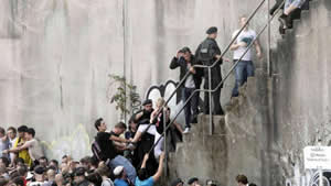Es gibt Live Berichte von Leuten, die berichtet haben, dass sie im Tunnel festgesteckt haben in einer riesigen Masse, dass sie Leute gesehen haben, die am Boden lagen und schon blau angelaufen waren, sogar viele Menschen auf einem Haufen übereinander, und ein paar Sanitäter gesagt haben sollen „Denen kann man nicht mehr helfen, die sind schon tot“ (!) Es gibt eine ganze Reihe von Berichten, die so etwas gesehen haben.
