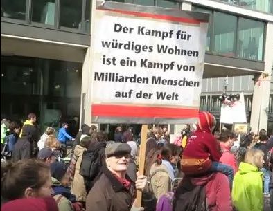 In den letzten Jahren sind jährlich 50.000 Neubürger dazu gekommen, demnächst soll die Einwohnerzahl von vor dem Krieg wieder erreicht werden, aber die Zahl der Wohnungen erhöht sich bei Weitem nicht entsprechend, zeitweilig hat man nach der Jahrtausendwende noch Wohnungen abgerissen, um das alte Mietniveau zu halten. Höhere zahlungskräftige Nachfrage bei knappem Angebot schafft die Voraussetzungen für Wohnraumverteuerung. Das auch haben Finanzinvestoren kommen sehen, die rechtzeitig große Wohnungsbestände aufgekauft haben, denen der hoch verschuldete Senat auch vor Jahren große Bestände an städtischen Wohnungen verkauft hat. Die besser verdienenden Neubürger konkurrieren mit den Einheimischen um die immer knapper werdenden Wohnungen, wobei die Ärmeren hinten runter fallen, neuerdings auch schon garnicht mal so Arme. In dieser Stadt gibt es täglich 20 bis 25 Zwangsräumungen, hieß es auf der Demo. Die Sätze fürs Wohnen bei Hartz IV oder Bafög kommen mit den wirklichen Wohnkosten auch nicht mehr mit. Wer als langjähriger Mieter eine günstige Wohnung hat und sie verliert, bekommt nichts vergleichbar günstiges mehr.